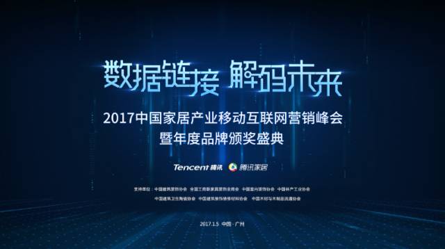 2017年1月5日,由腾讯主办、腾讯家居承办,以“数据链接·解码未来”为主题的2017中国家居产业移动互联网营销峰会暨年度品牌颁奖盛典在广州举行。